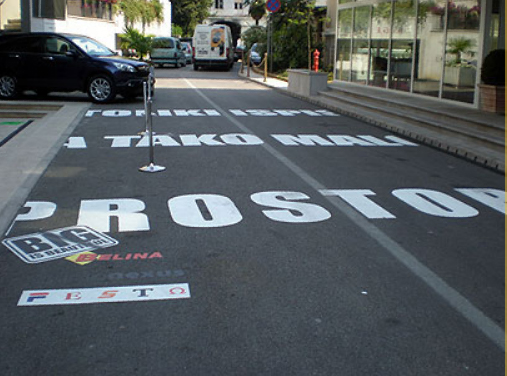 Asfaltne grafike savršeno prijanjaju na gotove sve podloge (asfalt, betonske ploče, kamene obloge i dr.).
