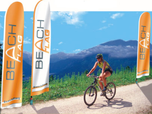 BeachFlag nudi oko 4 m2 atraktivnog i inovativnog oglasnog prostora. Sa svojom visinom od 5m, BeachFlag je izvanredan "eye-catcher" na svim outdoor eventima. Rotirajuća spojnica sprečava omotavanje zastave oko jarbola omogućavajući kontinuirano i optimalno zapažanje sa svih strana. BeachFlag, kao i njegova manja sestra DecoFlag, pripremljeni su i spremni da se postave u trenutku. Sa BeachFlagom nudimo kompletan sistem.