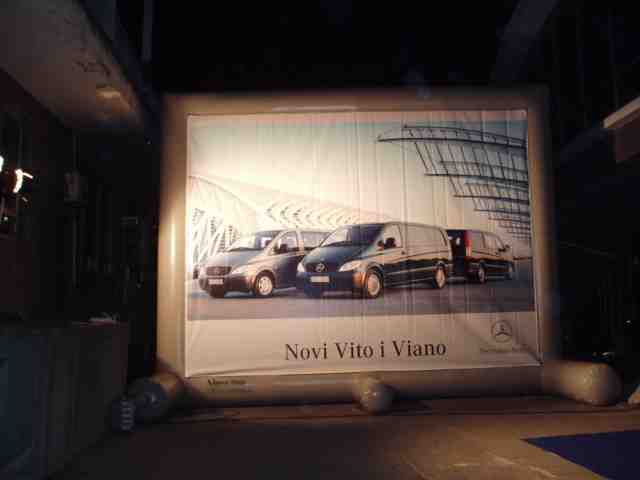 Revolucionarna, vazduhonosiva struktura može se postaviti na gotovo svakoj lokaciji. Standardna dimenzija oglasne površine je: 6,5 x 5 m, a moguća je izrada i drugih dimenzija po želji kupca. Reklamni plakat može se postaviti na jednu ili obe strane. Plakat se štampa tehnikom full color digitalnog otiska u jednom komadu (bez spajanja)! Štampa je otporna na sve vremenske uslove. Garancija za štampu je 3 godine. Idealno za promociju na raznim događajima, oglašavanje na sportskimterenima (na stadionima, igralištima, uz staze,...), na koncertima, za prodajne akcije, sajmove itd
